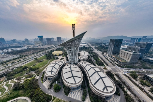 這是2024年3月16日在湖北武漢中國光谷未來科技城拍攝的武漢新能源研究院大樓(無人機照片)。新華社記者 伍志尊 攝