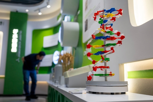 2025年4月21日,參觀人員在湖北武漢禾元生物科技股份有限公司展廳參觀。新華社記者 伍志尊 攝