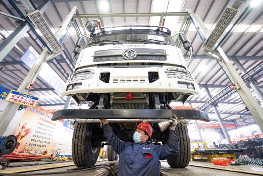 2025年2月13日,工人在位于湖北隨州的程力專用汽車股份有限公司生產(chǎn)線上作業(yè)。新華社記者 肖藝九 攝